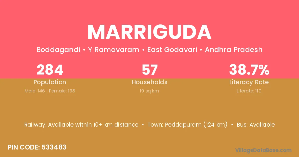 Marriguda village has a total population of 532 people, of which 270 are males and 262 are females.