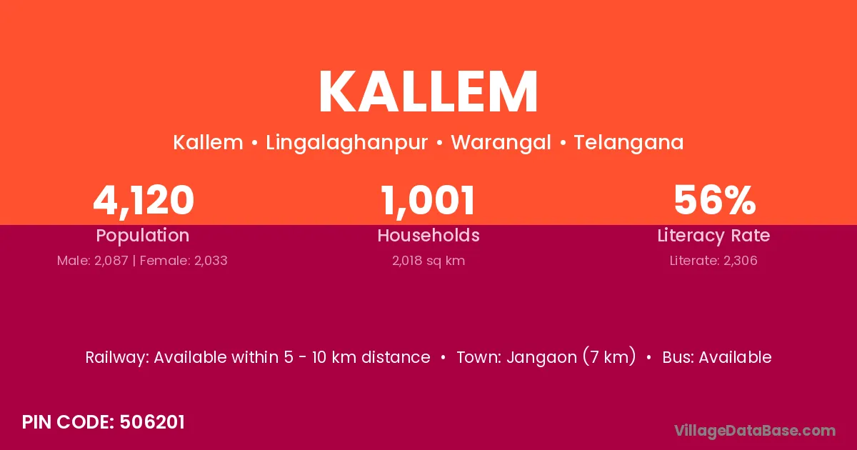 According to Census 2011 information, the village code of Kallem village is 506201.
