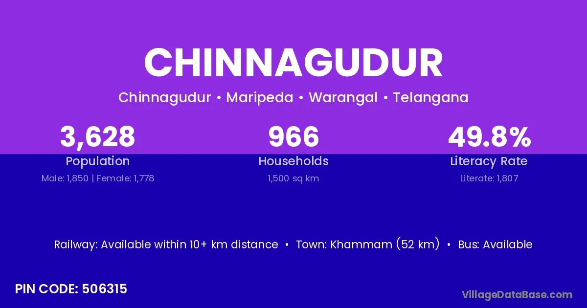 Khammam (52 km) is the nearest town to Chinnagudur village for major economic activities and is located approximately 52 km away.