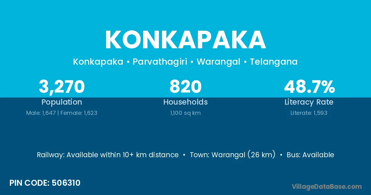 Warangal (26 km) is the nearest town to Konkapaka village for major economic activities and is located approximately 26 km away.