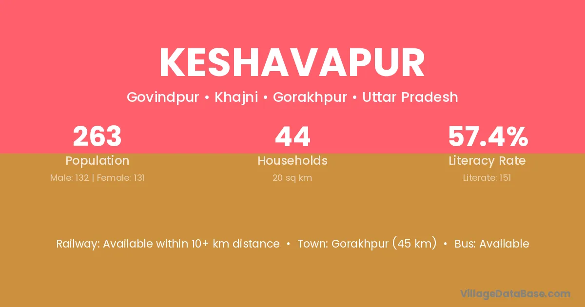 Keshavapur village has a total population of 2,271 people, of which 1,160 are males and 1,111 are females.