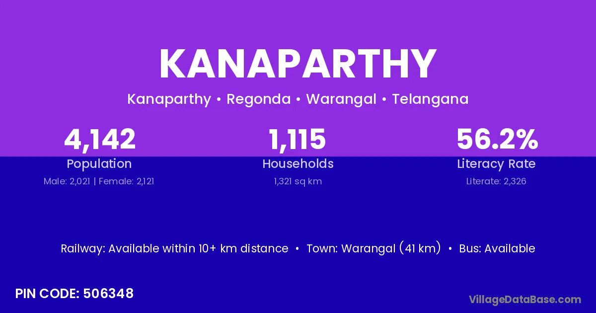 Warangal (41 km) is the nearest town to Kanaparthy village for major economic activities and is located approximately 41 km away.