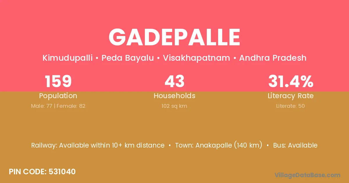According to Census 2011 information, the village code of Gadepalle village is 506005.