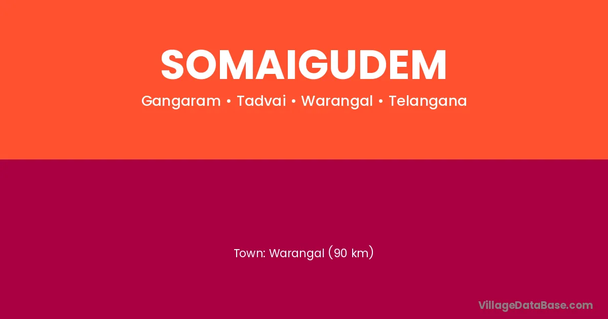 Somaigudem village is located in the Tadvai Mandal of the Warangal district in Telangana .