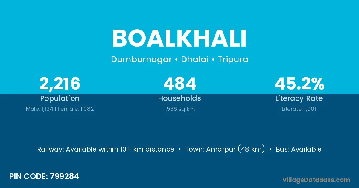 Boalkhali village is located in the Dumburnagar Subdivision of the Dhalai district in Tripura .