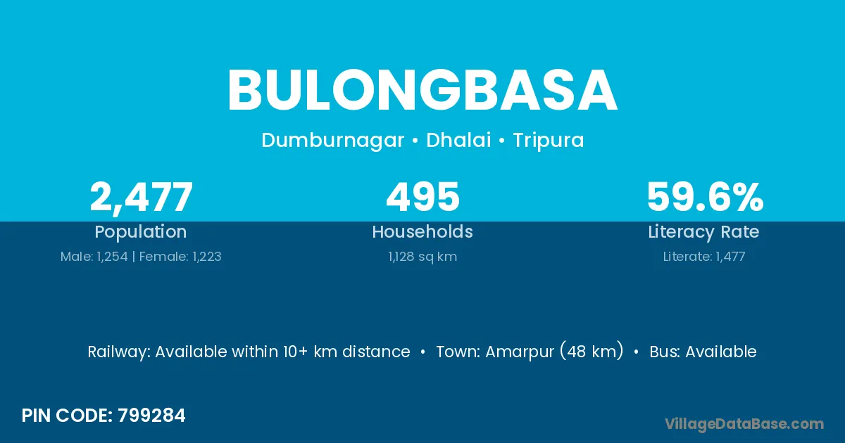 Amarpur (48 km) is the nearest town to Bulongbasa village for major economic activities and is located approximately 48 km away.