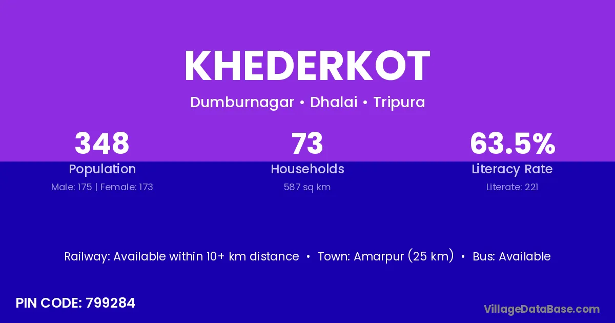 Amarpur (25 km) is the nearest town to Khederkot village for major economic activities and is located approximately 25 km away.