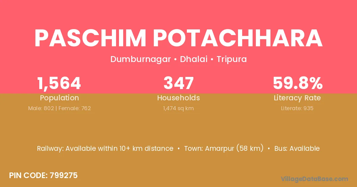 Amarpur (58 km) is the nearest town to Paschim Potachhara village for major economic activities and is located approximately 58 km away.