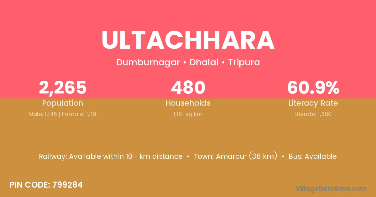 Amarpur (38 km) is the nearest town to Ultachhara village for major economic activities and is located approximately 38 km away.
