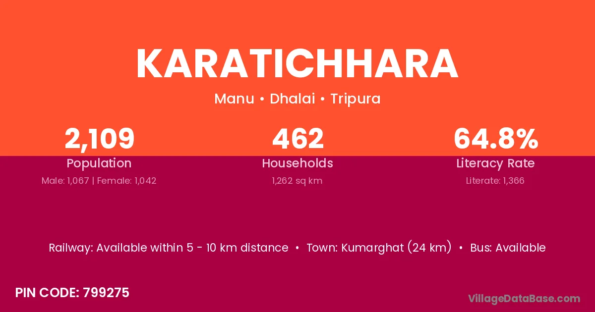 Kumarghat (24 km) is the nearest town to Karatichhara village for major economic activities and is located approximately 24 km away.