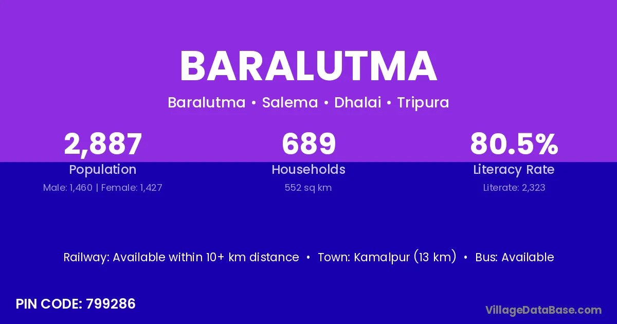 Kamalpur (13 km) is the nearest town to Baralutma village for major economic activities and is located approximately 13 km away.