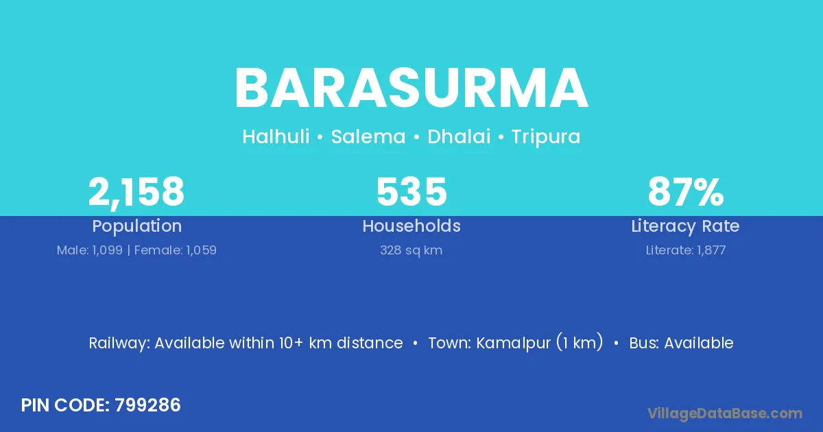 Kamalpur (1 km) is the nearest town to Barasurma village for major economic activities and is located approximately 1 km away.