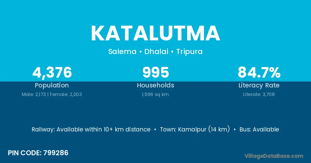 Kamalpur (14 km) is the nearest town to Katalutma village for major economic activities and is located approximately 14 km away.