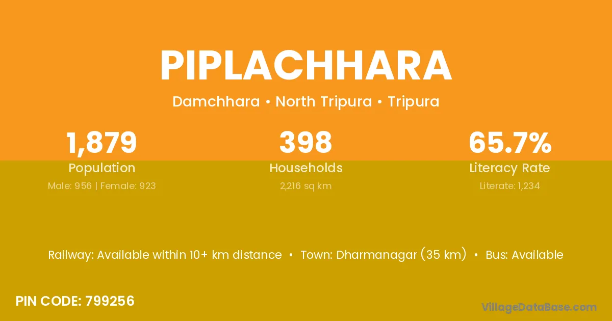 Dharmanagar (35 km) is the nearest town to Piplachhara village for major economic activities and is located approximately 35 km away.