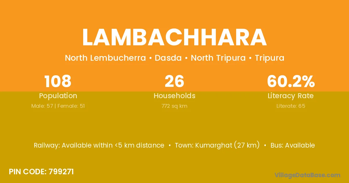 Kumarghat (27 km) is the nearest town to Lambachhara village for major economic activities and is located approximately 27 km away.
