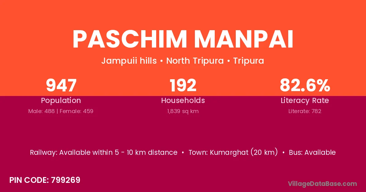 Kumarghat (20 km) is the nearest town to Paschim Manpai village for major economic activities and is located approximately 20 km away.
