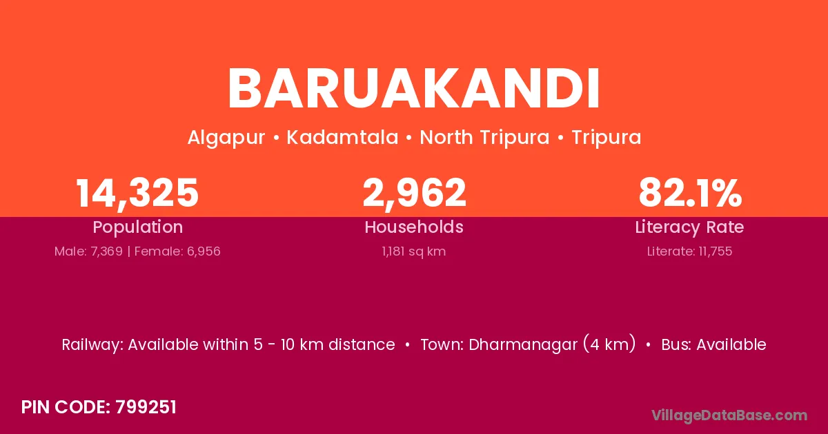 Dharmanagar (4 km) is the nearest town to Baruakandi village for major economic activities and is located approximately 4 km away.