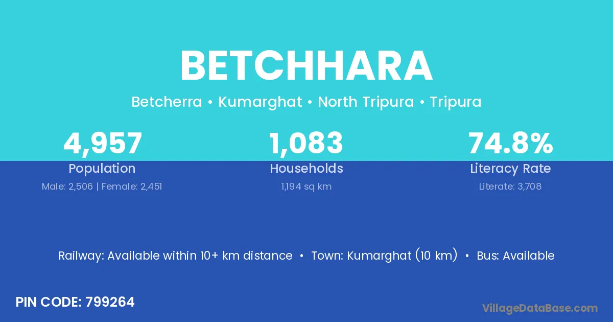 Kumarghat (10 km) is the nearest town to Betchhara village for major economic activities and is located approximately 10 km away.