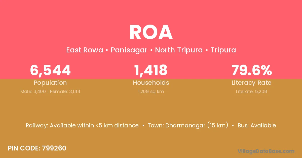 Dharmanagar (15 km) is the nearest town to Roa village for major economic activities and is located approximately 15 km away.