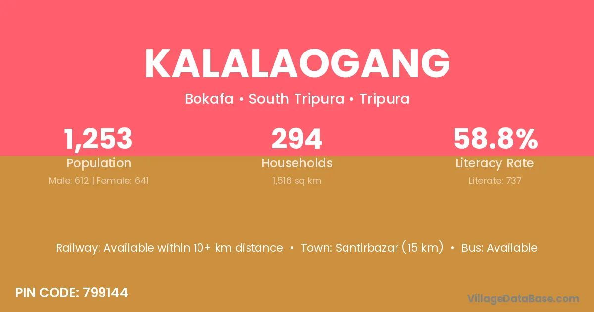 Kalalaogang village is located in the Bokafa Subdivision of the South Tripura district in Tripura .