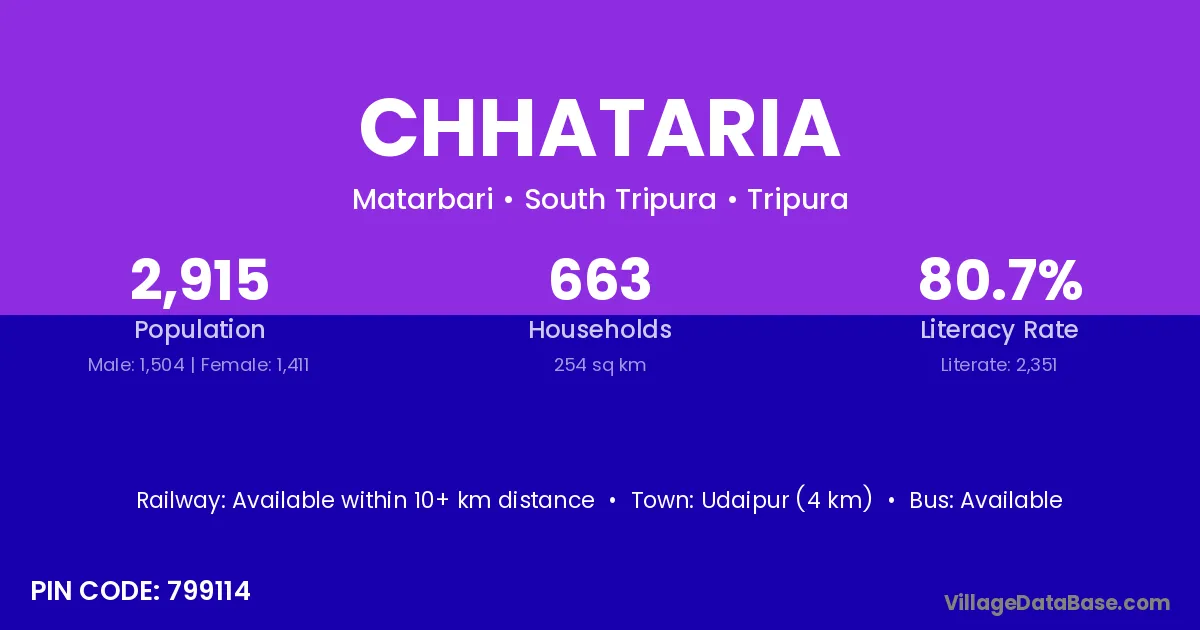 There are approximately 663 households in Chhataria village.