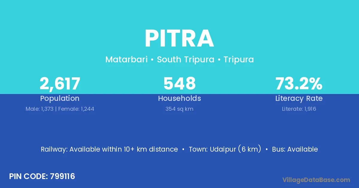 Pitra village is located in the Matarbari Subdivision of the South Tripura district in Tripura .