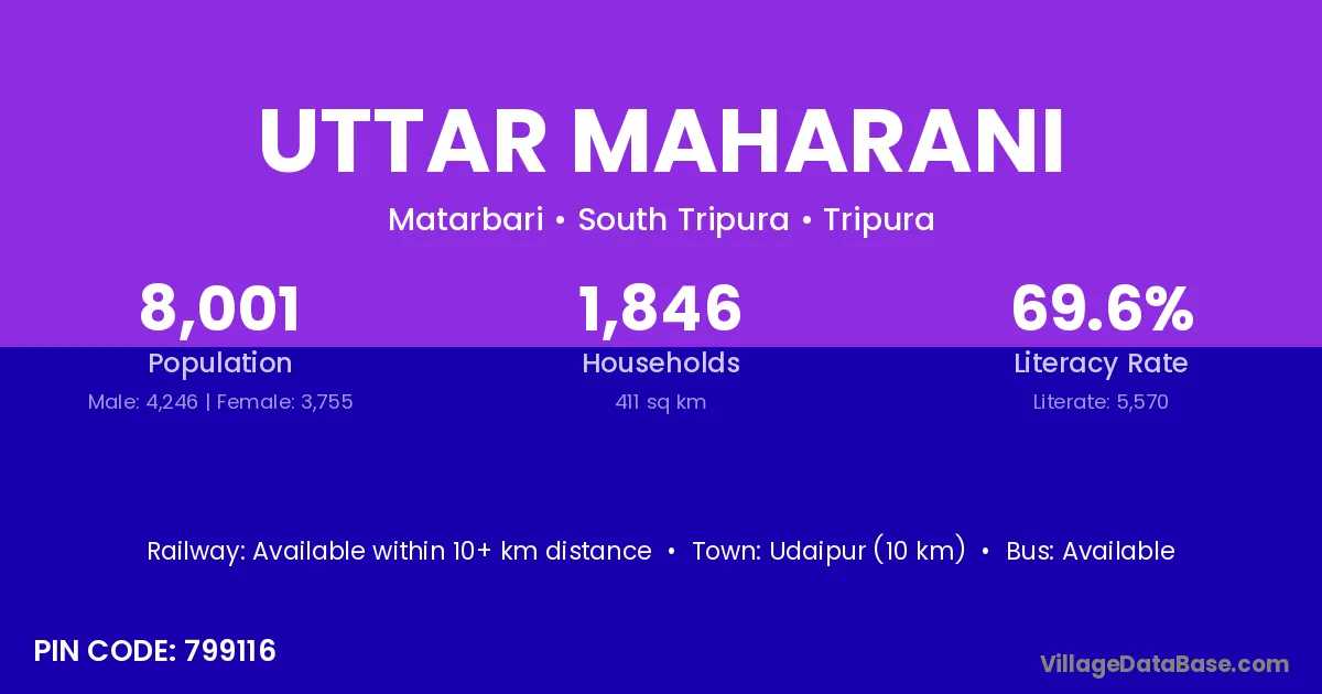 Uttar Maharani village is located in the Matarbari Subdivision of the South Tripura district in Tripura .