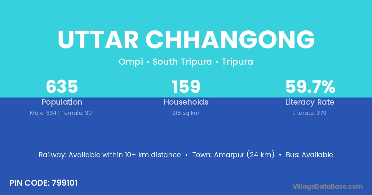Amarpur (24 km) is the nearest town to Uttar Chhangong village for major economic activities and is located approximately 24 km away.
