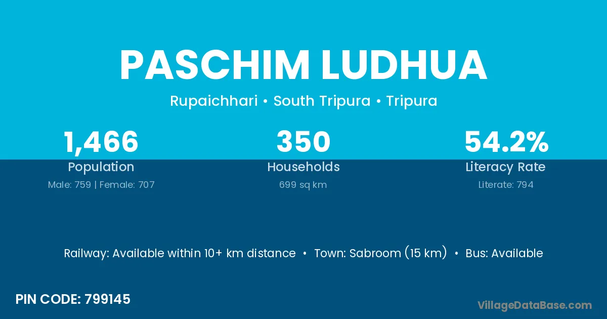 Sabroom (15 km) is the nearest town to Paschim Ludhua village for major economic activities and is located approximately 15 km away.