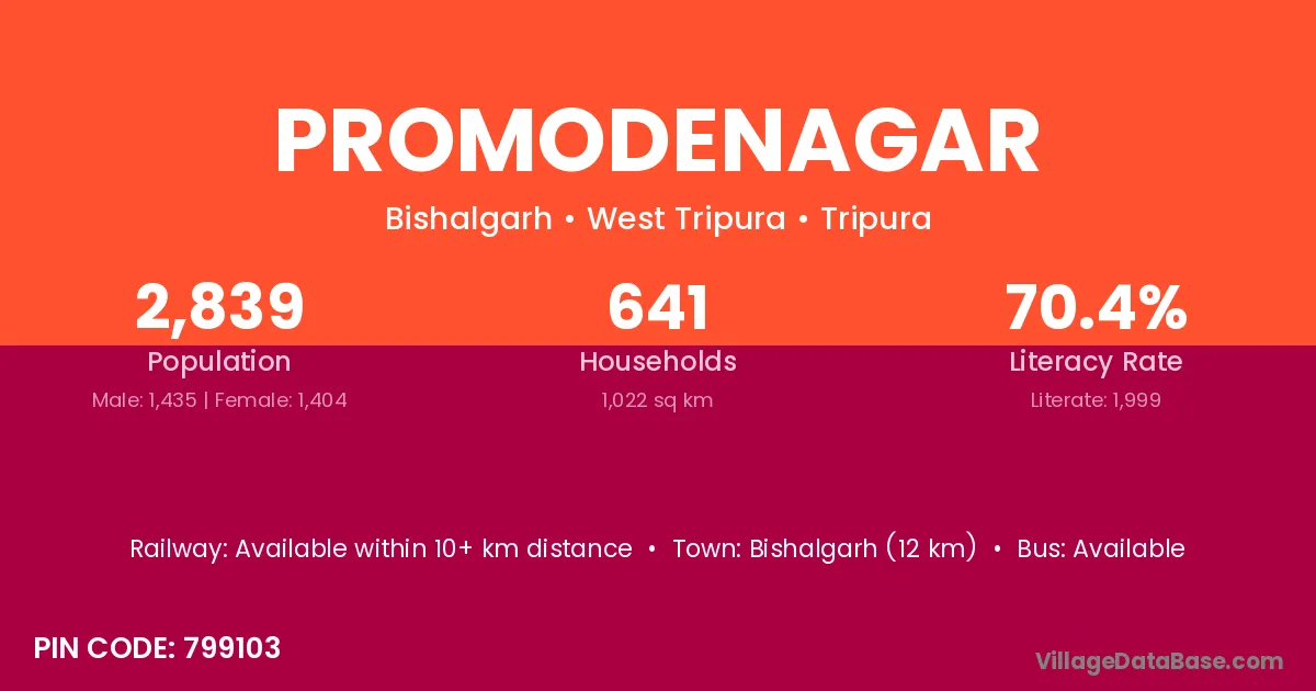 Bishalgarh (12 km) is the nearest town to Promodenagar village for major economic activities and is located approximately 12 km away.