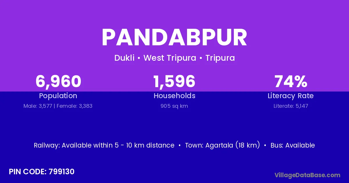 Agartala (18 km) is the nearest town to Pandabpur village for major economic activities and is located approximately 18 km away.