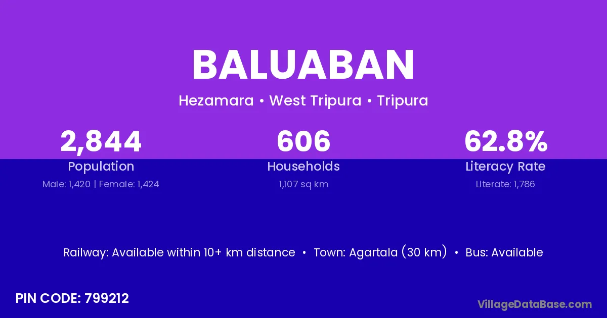 Agartala (30 km) is the nearest town to Baluaban village for major economic activities and is located approximately 30 km away.