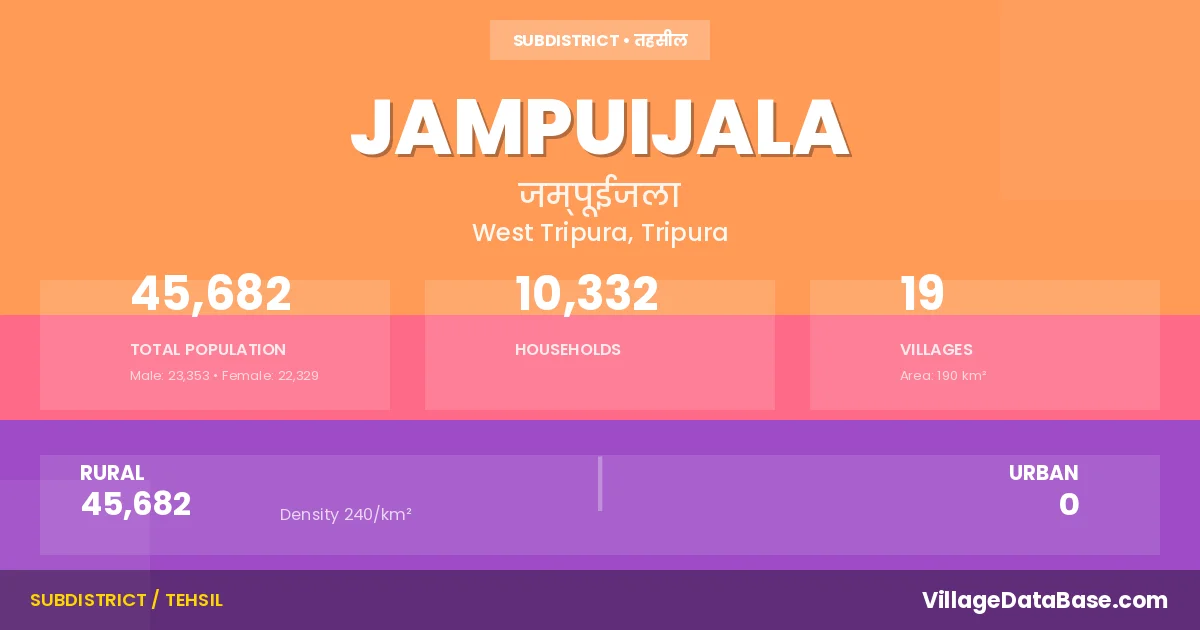 A: According to the 2011 census, the population of Jampuijala Subdivision is 45682.