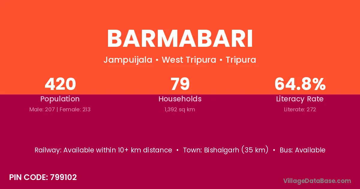 Bishalgarh (35 km) is the nearest town to Barmabari village for major economic activities and is located approximately 35 km away.