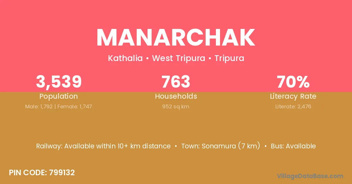 Sonamura (7 km) is the nearest town to Manarchak village for major economic activities and is located approximately 7 km away.