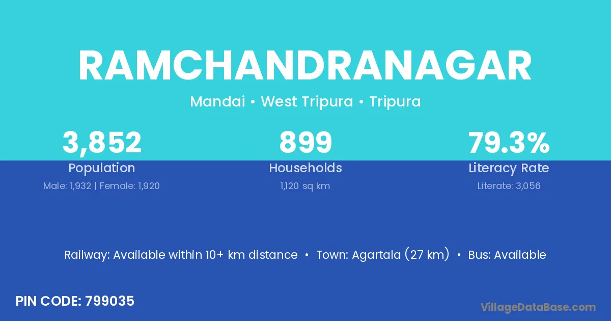 Agartala (27 km) is the nearest town to Ramchandranagar village for major economic activities and is located approximately 27 km away.