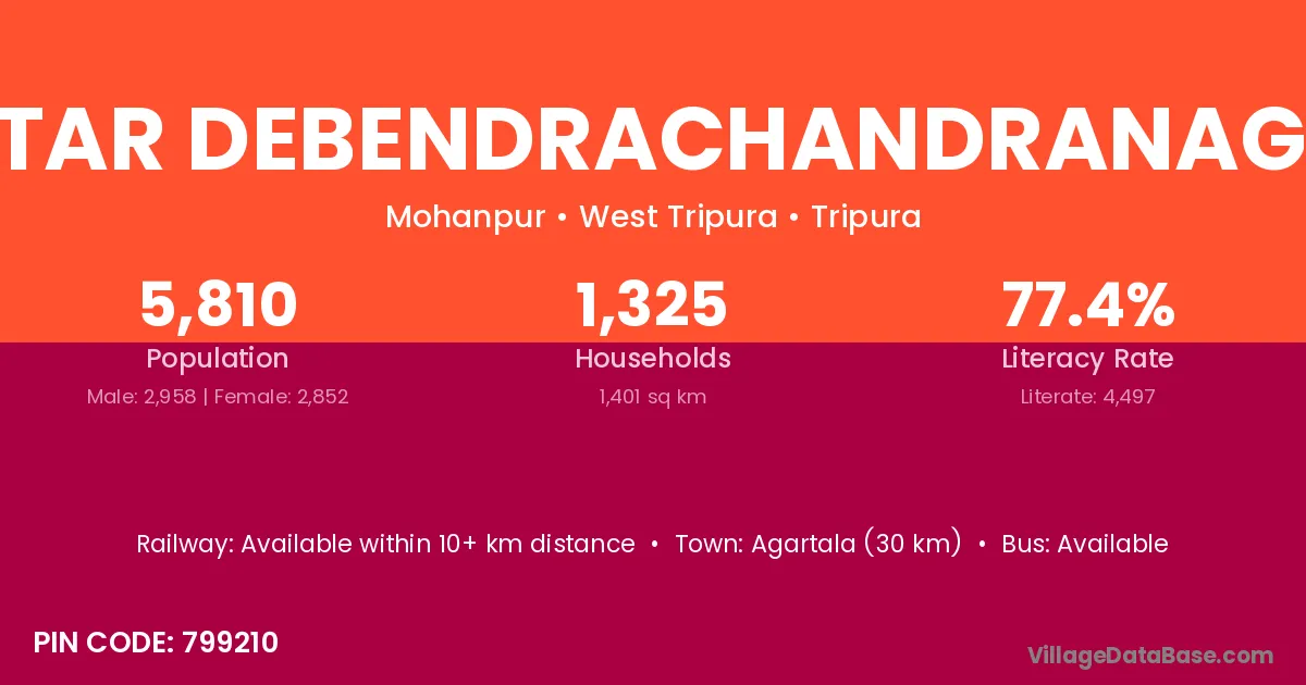 Agartala (30 km) is the nearest town to Uttar Debendrachandranagar village for major economic activities and is located approximately 30 km away.