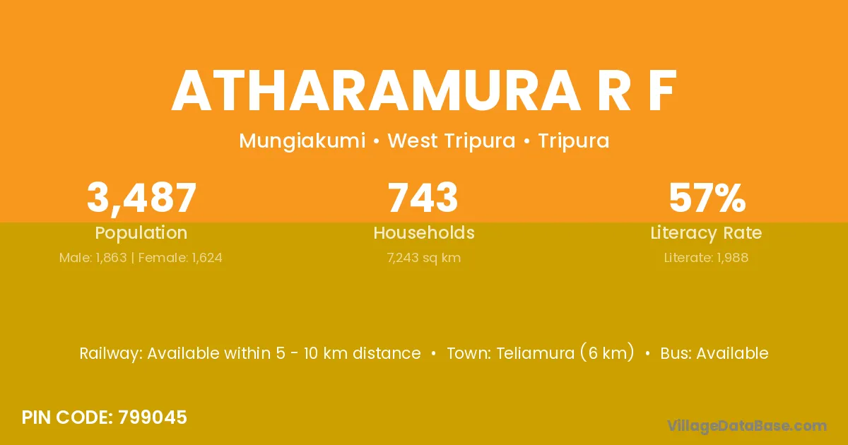 Teliamura (6 km) is the nearest town to Atharamura R F village for major economic activities and is located approximately 6 km away.