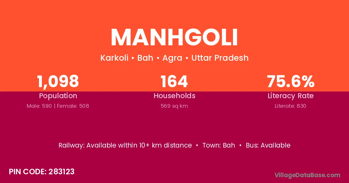 Manhgoli village is located in the Bah Tehsil of the Agra district in Uttar Pradesh .