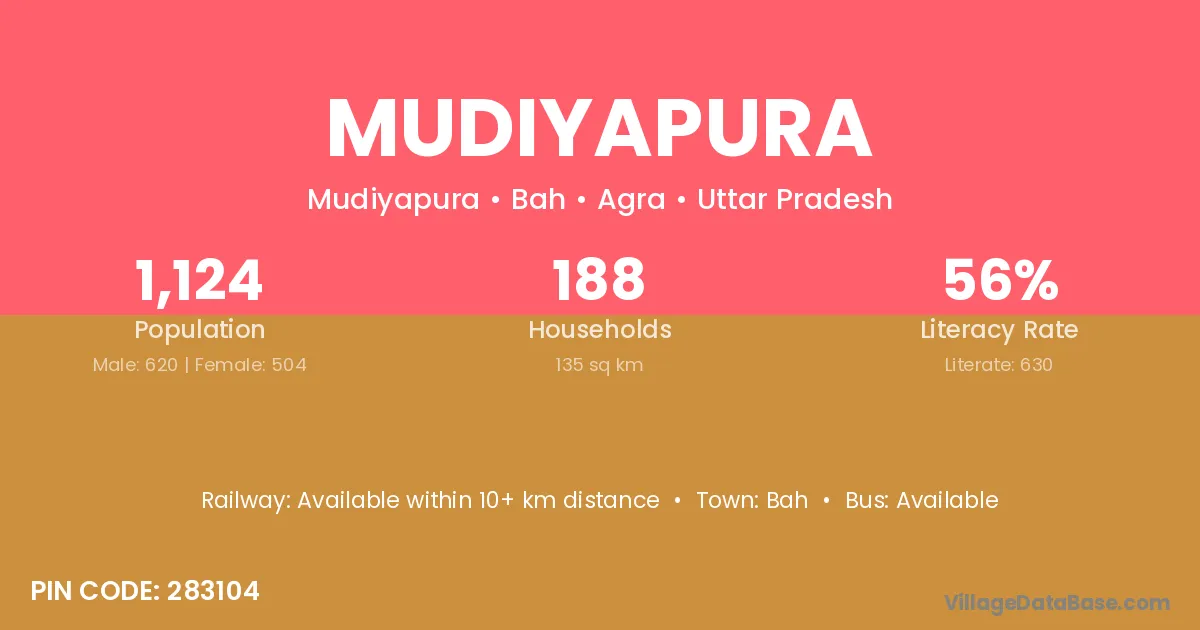 Bah is the nearest town to Mudiyapura village for major economic activities