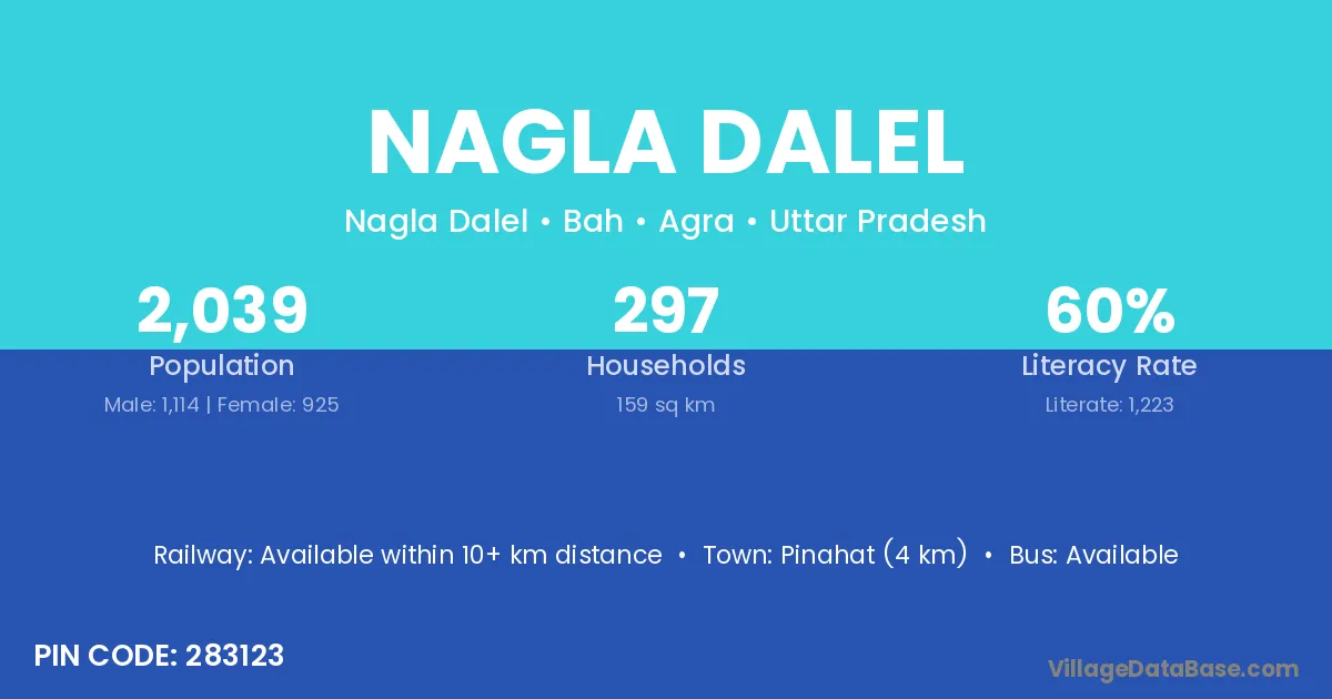 Pinahat (4 km) is the nearest town to Nagla Dalel village for major economic activities and is located approximately 4 km away.