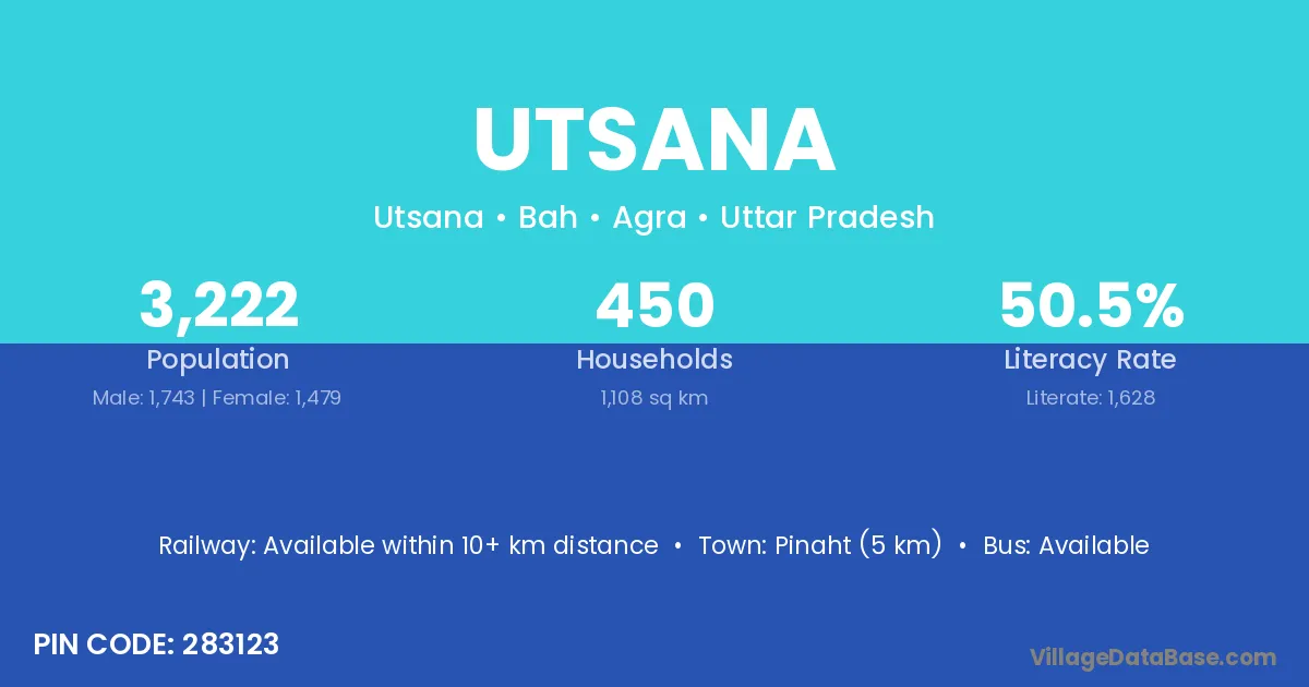 Utsana village is located in the Bah Tehsil of the Agra district in Uttar Pradesh .