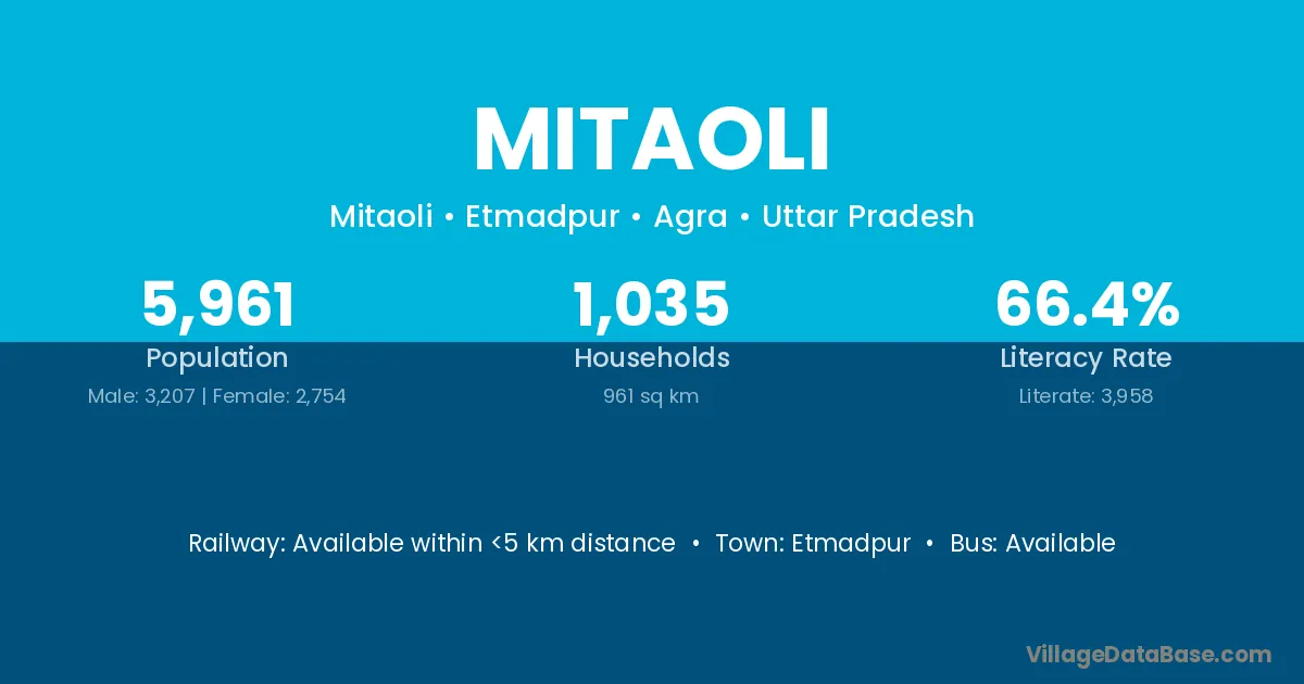 Etmadpur is the nearest town to Mitaoli village for major economic activities