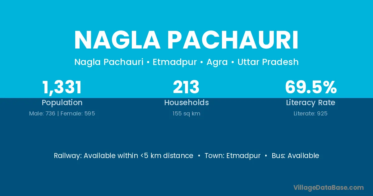 Nagla Pachauri village has a total population of 1,331 people, of which 736 are males and 595 are females.