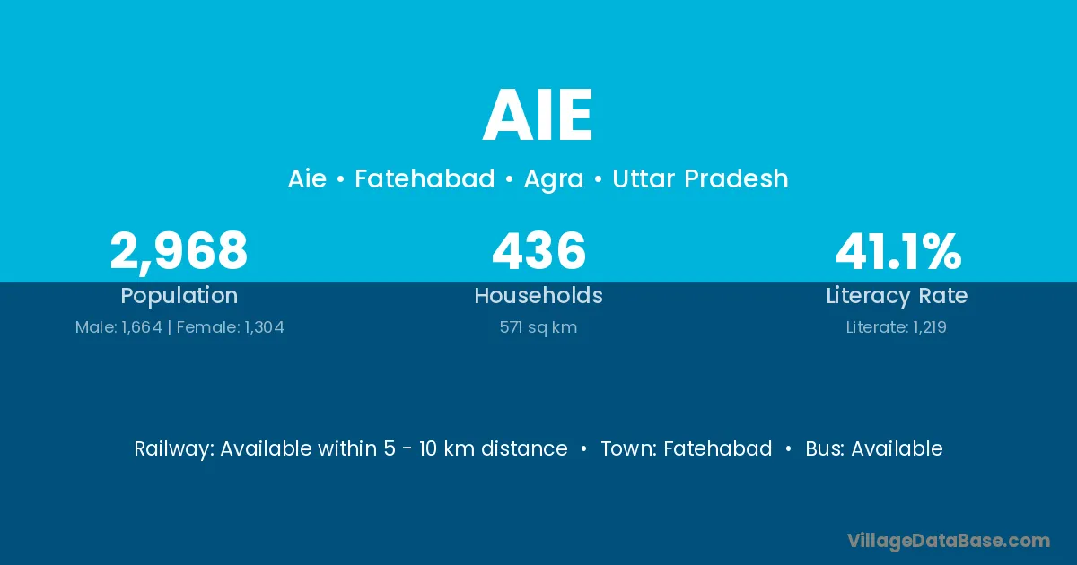 Aie village is located in the Fatehabad Tehsil of the Agra district in Uttar Pradesh .