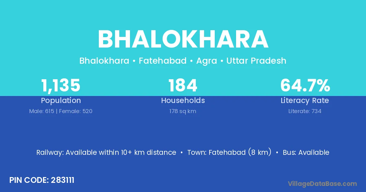 Fatehabad (8 km) is the nearest town to Bhalokhara village for major economic activities and is located approximately 8 km away.
