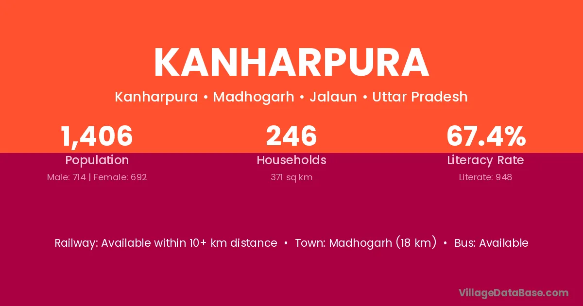 The literacy rate of Kanharpura village is 44.84%. Male literacy stands at 54.77% and female literacy at 33.41%.