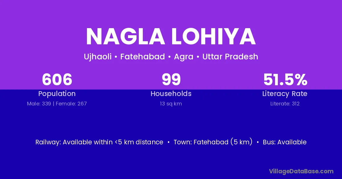 Nagla Lohiya village has a total population of 606 people, of which 339 are males and 267 are females.