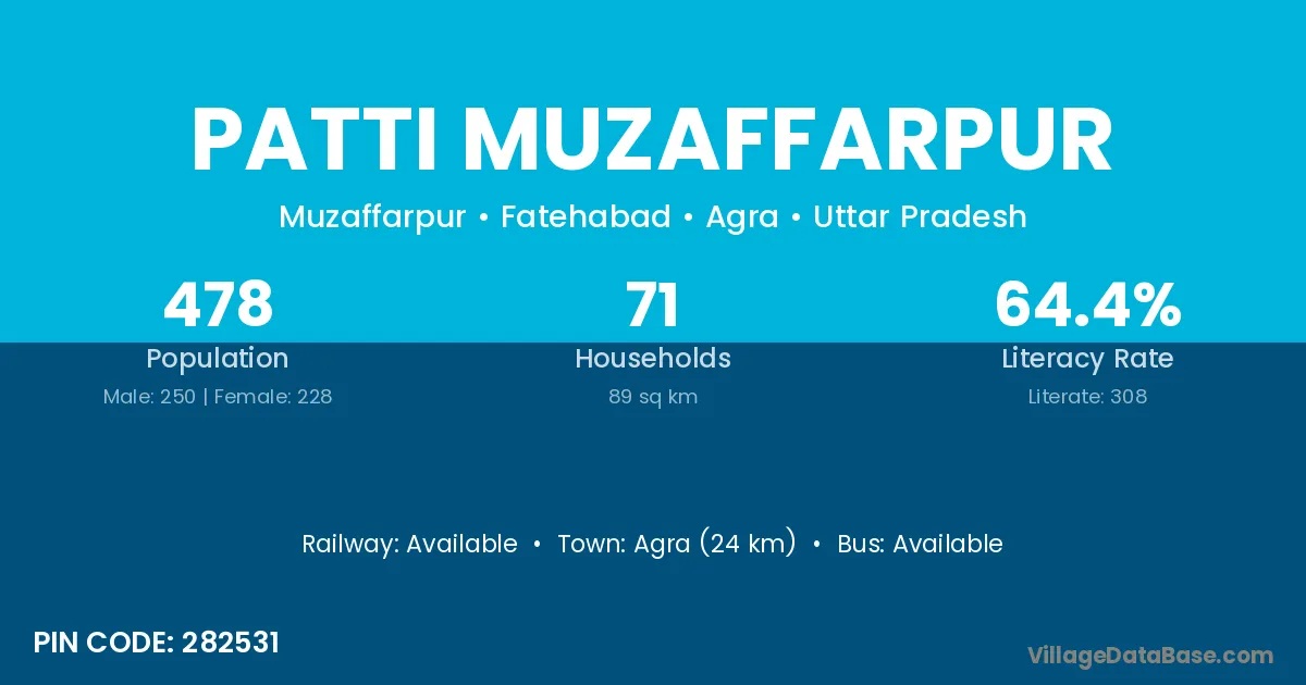 Agra (24 km) is the nearest town to Patti Muzaffarpur village for major economic activities and is located approximately 24 km away.