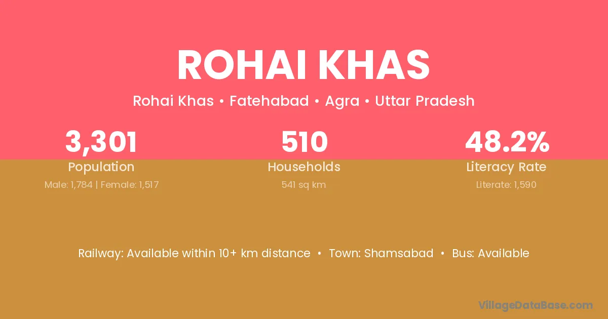 Rohai Khas village has a total population of 3,301 people, of which 1,784 are males and 1,517 are females.